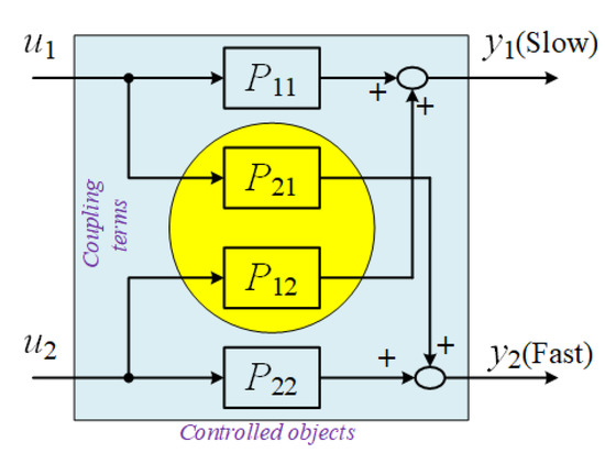 Since the controlled plant has been simplified to a two inputs, two outputs system, the two channels are strongly under coupled effectiveness. The diagram of the two channels is shown in Figure 3, where P and P indicate the controlled objects of Ch1 and Ch2, respectively, and P and P indicate the respective coupling terms between these two channels.