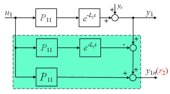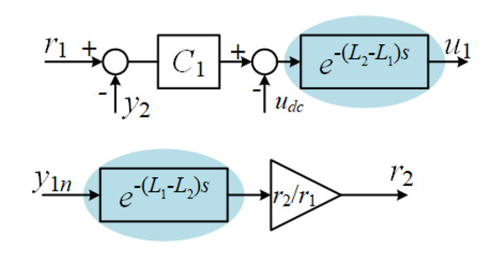 In the proposed control structure, the Smith predictor method is introduced for not only dead time compensation but for reference generation, as shown in Figure 5. The model output without dead time, which is indicated by y, is used as the reference value r for the fast mode. This structure allows avoidance of a further delay of the fast mode response due to the delay of the slow-mode output. In this proposal, the model based method has been introduced for both Smith predictor and feed-forward compensation, and the model is approximated by coupled SISO systems with time delay.
