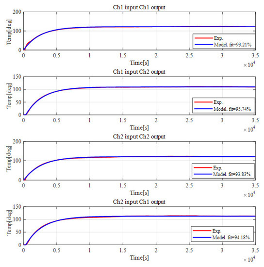 In this study, the two channels Ch1 and Ch2 were used as the controlled objects to apply the SMBC control method. A step response method was introduced to these two channels for controlled object identification, and the identification results for the paired coupling terms are shown in Figure 10.