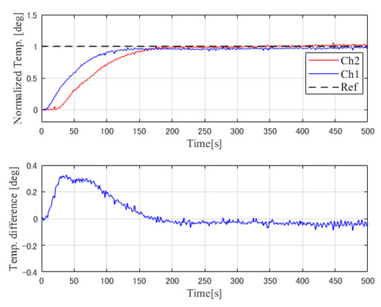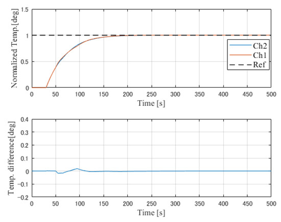 In the proposed SMBC method, the output ratio can be controlled even when the reference temperatures at multiple points are different. The gain block (r/ r), as indicated by (e) in Figure 2, which is located after the reference (r), corresponds to this part. The fast-mode output follows different references from the slow-mode reference while maintaining a constant ratio. As a result, the setting time and ratio of each output’s trajectory can be precisely matched in each mode.