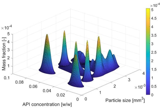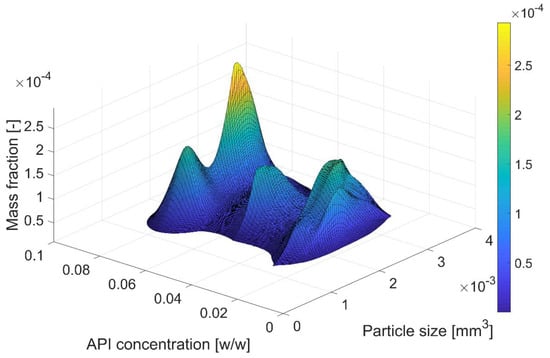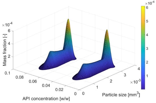 Despite the fact that most models in solids processing technology consider particle size distribution as one of the main material parameters, many of them additionally incorporate various other attributes. For example, the shape and orientation of primary particles are important in crystallization processes []; the size and yield strength of the colliding granules can be considered as parameters for wet granulation models []; the distributions of granules by porosity and saturation are important for breakage rate in some apparatuses []; and the moisture content of particles plays a significant role in dryers [].
