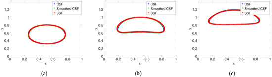 The Smoothed CSF model (by Ubbink [67]) proposed modifying CSF by modifying the calculation of curvature of interface by using a smoothed volume fraction of liquid ().