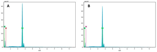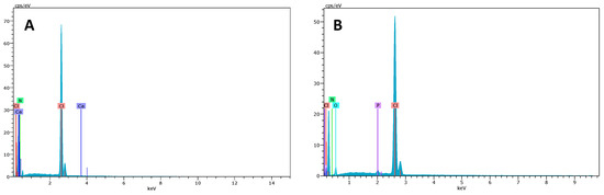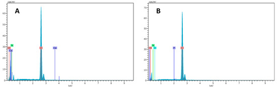 Energy-dispersive X-ray (EDX) analysis of membranes containing 70% w/w (A) and 30% w/w of IL (B) before being used.