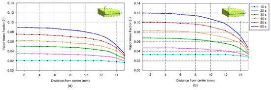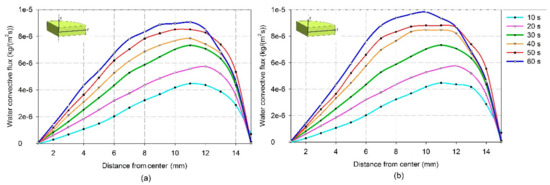 While numerous studies have been carried out involving computer simulations to replicate different food types and dehydration techniques [27,28,29], research to date has not provided significant insights into the processes involved from a physical perspective, and current approaches have not provided effective predictions. Among these studies, it is assumed that energy involves conductive heat transfer, while moisture involves diffusive transport, but an accurate understanding of the mechanisms underpinning the transport process when microwaves are used for heating has not yet been achieved [15].