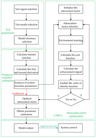 In order to improve learning efficiency of the algorithm, the threshold value of attenuation factor obtained in [31] is used as the initial region of CARLA (i.e., x i [ x min i , x max i ] ). Then, using the powerful interactive learning ability of CARLA, the optimal parameters can be obtained online to improve the accuracy and effectiveness of frequency response estimation. The learning process is shown in Figure 2, and the details of the algorithm are as follows: