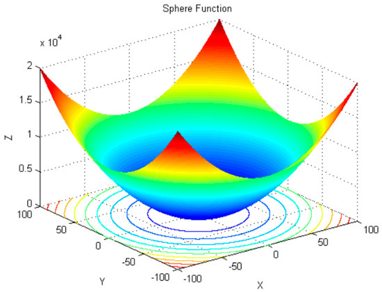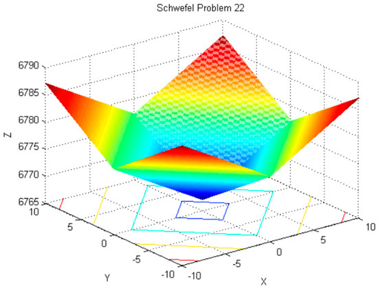 Figure 10. Three-dimensional graph of Schwefel’s problem 22.
