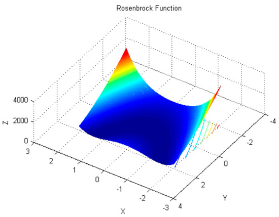 Figure 6. Three-dimensional graph of the Rosenbrock function.