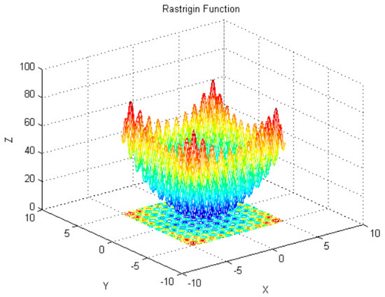 Figure 8. Three-dimensional graph of the Rastrigin function.