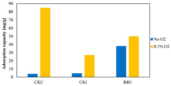 For this reason, further investigations were made on selected sorbents from the first tests (AirDep CKC, AirDep CKI and SulfaTrap R8G) considering the addition of 0.1% O2 in the inlet biogas stream, with an H2S inlet concentration of 95 ppm(v).