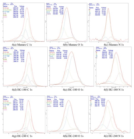 The following are available online at https://www.mdpi.com/2227-9717/7/9/560/s1, Figure S1a–i: Figure S1a Manure C 1s, Figure S1b Manure O 1s; Figure S1c Manure N 1s; Figure S1d HC-180 C 1s; Figure S1e HC-180 O 1s; Figure S1f HC-180 N 1s; Figure S1g HC-240 C 1s; Figure S1h HC-240 O 1s; Figure S1i HC-240 N 1s.