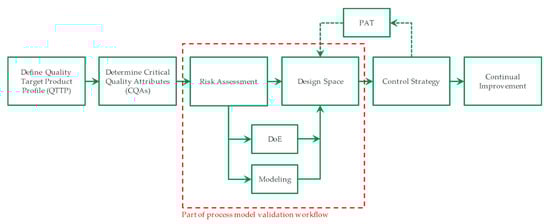 Quality-by-design (QbD) process development workflow with process modelling as its central part [17].