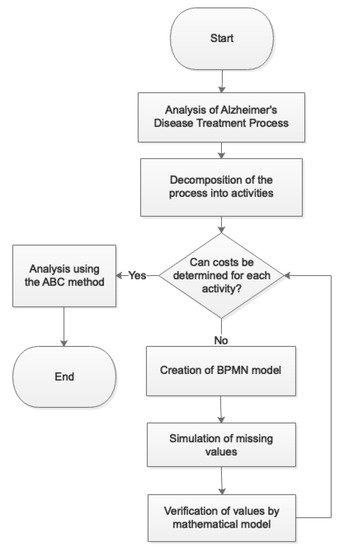 - Section 3 presents the research proposal and the main steps leading to the results. In the first Section 3.1, the study design is outlined. In the second Section 3.2 are two modeling approaches, Business process Model and Notation (BPMN) and System Dynamics (SD), and the Activity-Based Costing method (ABC) is introduced. The third Section 3.3 is devoted to the main cost items of Alzheimer’s disease.