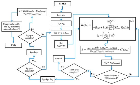 Hence, we opted for an algorithm that scans the entire range of possible values of kL and kW in order to identify the global minima of the objective function. In order to improve resolution and shorten computation time, the following features were implemented within the parameter identification algorithm: