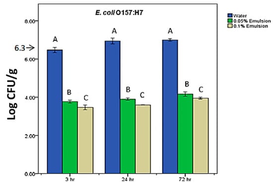 Inhibition of Escherichia coli on fresh lettuce by oregano oil NEs. Reproduced with permission from Noori et al. Food Control, Published by Elsevier, 2018 [110].