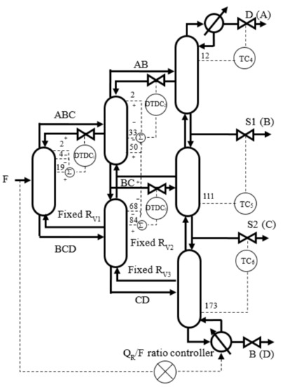The SDTDC scheme, as illustrated in Figure 9, is introduced to further improve the dynamic performances using DTDC in the prefractionator and the middle section.