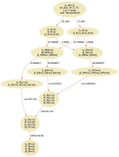 - Stan, O.; Bitton, R.; Ezrets, M.; Dadon, M.; Inokuchi, M.; Ohta, Y.; Yamada, Y.; Yagyu, T.; Elovici, Y.; Shabtai, A. Extending Attack Graphs to Represent Cyber-Attacks in Communication Protocols and Modern IT Networks. arXiv 2019, arXiv:1906.09786. [Google Scholar]