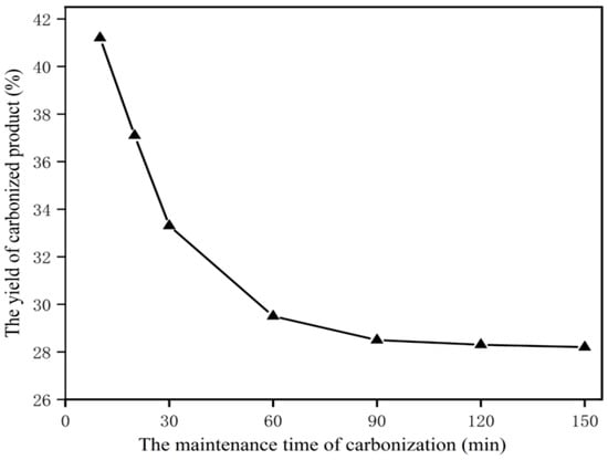 The curve for the yield of carbonized product with different carbonization maintenance times.