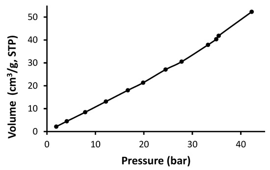 Activated carbon has been prepared from different materials such as polymers, resins, and biomass and can be used as an efficient adsorbent for CO2 [30]. Various chemical and physical processes have been conducted to activate and modify the surface area and pore volume of such adsorbents to increase their capacity for CO2 capture. The chemical process of activation requires the use of a base, while the physical one requires an appropriate carbonization gas [35,36]. The adsorption capacity of activated carbon depends on the distribution of the chemical activator within the matrix. Polyacrylonitrile in the presence of a base (e.g., potassium hydroxide; KOH) was used as an effective medium to capture CO2 and exhibited good CO2 uptake at 25 °C and under 1 bar [31]. The CO2 uptake was even higher for the resorcinol–formaldehyde resin at the same temperature and pressure in the presence of potassium carbonate as an activator [37].