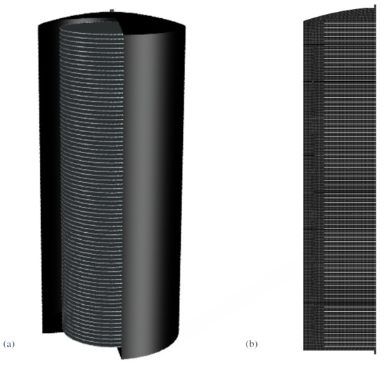 30]. For this model, a software-aided structured mesh is generated to precisely control the mesh size and the connection to enhance the mesh quality. With a mesh independence test, a resulting mesh with 50388 cells is proven to achieve a good cell quality and a size-independent solution. The acceptable range and the desired value of skewness, overall quality, and aspect-ratio, which characterize the mesh quality, are shown in
