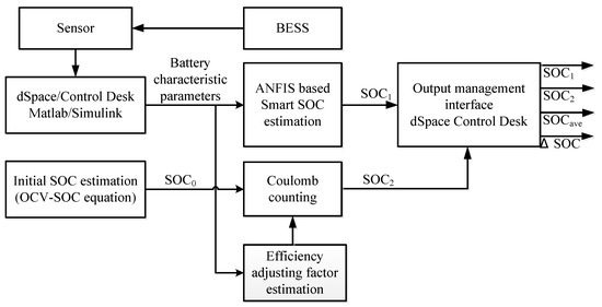 Following this section, the next section explains the proposed hybrid SOC estimation scheme and briefly introduces the ANFIS principle. The third section introduces the arrangement of battery experiments and the method used to obtain characteristic parameters, describes the battery measurement experiment platform, and analyzes the obtained parameters. In addition, this section also explains how to establish an ANFIS in a MATLAB environment, and the correctness of the SOC estimation scheme is verified through simulations. An inverter integrated BESS hardware setup is explained in the fourth section for further verifying the proposed hybrid real-time SOC estimation scheme via experimental tests. A real-time digital control system was developed with the dSPACE DS1104 platform, and three test cases were carried out. Finally, a conclusion is drawn in the fifth section.