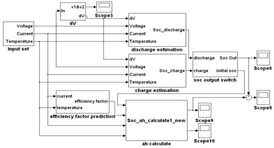 To verify the correctness of coding and performance of the proposed SOC estimation algorithm, a simulation with MATALB software was designed. Figure 15 shows the designed simulation system. Figure 16 shows real-time calculation of voltage slew rate. Figure 17 shows the estimated outputs of efficiency correction factors, and Figure 18 and Figure 19 show SOC estimation results of the Coulomb counting and ANFIS, respectively.