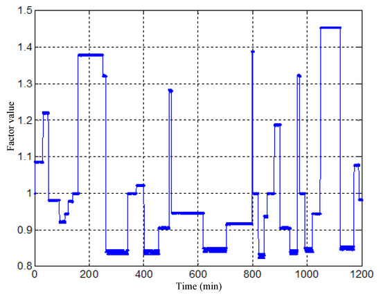 where Vk represents the current voltage and Vk−1 represents the previous sampled voltage. The designed ANFIS configuration for SOC estimation is shown in Figure 3 and the block diagram of the full detecting algorithm is shown in Figure 4. In the proposed algorithm, the efficiency adjusting factors (K) are used to compensate for the usable capacity variation due to battery current, ambient temperature, and aging level; they are calculated as follows: