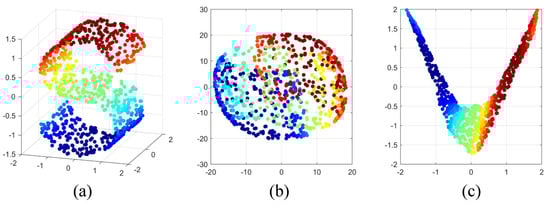 - Saul, L.K.; Roweis, S. Think Globally, Fit Locally: Unsupervised Learning of Low Dimensional Manifolds. J. Mach. Learn. Res. 2003, 4, 119–155. [Google Scholar] [CrossRef][Green Version]