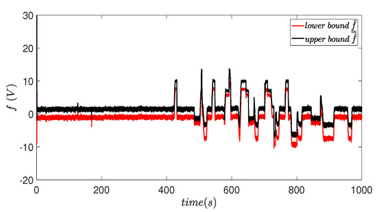 Figure 10 shows the evolution of the estimated bounds for the input fault, which corresponds to change in the the voltage of the motor power supply. The limits are kept at a value centered around zero in the absence of fault and change their value when the fault is present.