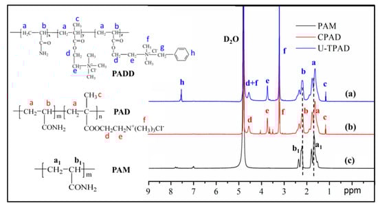 Similar to FTIR spectra, the 1H NMR spectra of PAM, PAD and PADD were studied for further analysis of structural properties. The results are shown in Figure 4.