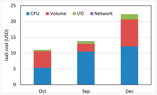 To determine the IaaS cost, the usage of resources in the cloud should be measured and then evaluated [4,5]. The three representative resource types that need to be evaluated in IaaS are CPU, network, and storage. In the case of CPU, the basic price of a model is determined according to the computing power of the model, and the cost is charged based on the unit price of the model and the service time. In the case of network resources, the amount of data transferred over the network is evaluated and charged accordingly. In the case of storage resources, the combinations of the storage volumes used and the number of I/O operations are evaluated and charged. Although the cost of IaaS is determined based on the aforementioned resource usage, this is totally the job of cloud service providers and users cannot examine the billing procedure; they just pay the cost requested by CSPs.