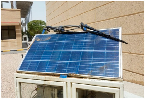 Figure 2 shows the installed solar panel together with the cleaning system. It is worth mentioning here that the cleaning rate, i.e., the time of movement of the cleaning components is measured and found to be 8 s. The amount of dust covering the solar panel triggered the cleaning system to start.