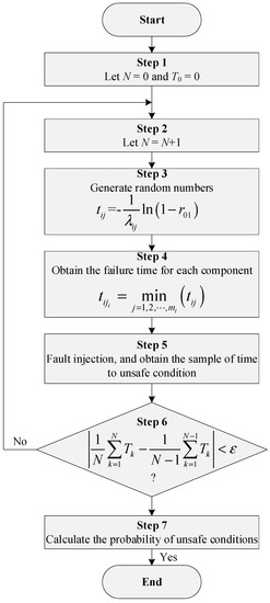 The failure time for each component is ordered from smallest to largest, and the ith component’s th failure mode will be injected into the nominal model at one by one according to the fault injection method proposed in Section 3. When the unsafe condition occurs, the corresponding will be the Nth sample of the time to unsafe conditions obtained from the Nth simulations (TN).