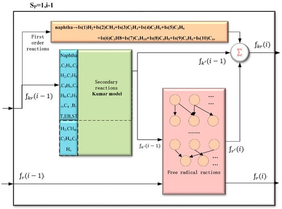 In each sub-graph, the functional relationships in Figure 2 are presented below, it is an element of the loop iteration process showed in Figure 1. For (I − 1), the infinitesimal part, its input is , and its output is and . The means at (i − 1)th infinitesimal part, the content of different substances listed in Table 3. Its initial value is feedstock. is a vector quantity of . The K-R model contains three part mainly: