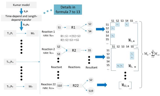 where both kr and shift matrix Mm are time-dependent variables. The shift matrix is 19 matrix for the Kumar model. For the whole reaction network,