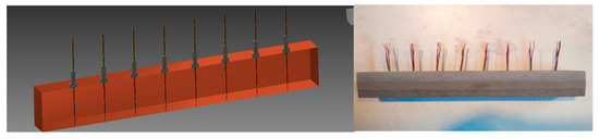 - Electrode-bearing core. This type of core is used to measure the remaining oil distribution. A schematic and a picture of the core sample setup are shown in Figure 1. Copper electrodes were installed along the core samples, at an interval of 3.3 cm.
