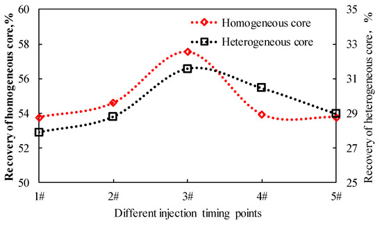 3.2.2. Microscopic Displacement at Different Polymer Injection Timing