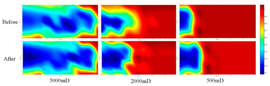 3.4. Effect of Polymer Injection Timing on Residual Oil Distribution