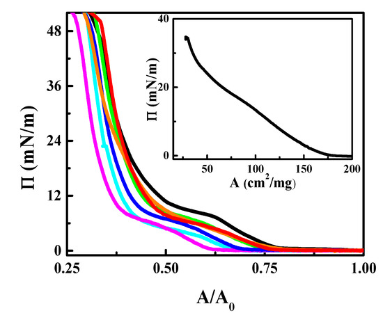 - Dynarowicz-Łątka, P.; Kita, K. Molecular interaction in mixed monolayers at the air/water interface. Adv. Colloid Interface Sci. 1999, 79, 1–17. [Google Scholar] [CrossRef]