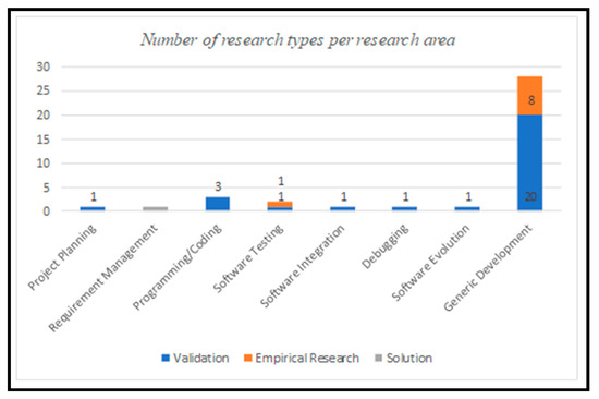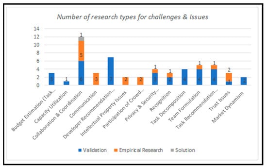 Further, the number of empirical studies focusing on individual and overall software development are very limited (Figure 1, Figure 2 and Figure 3). This limits the empirical evidence that could attract researchers’ interest, highlight unique challenges, and suggest research gaps. The lack of experience reports and opinions (which are shared by other companies) in the literature limits the sharing of the knowledge (lesson learned) that could be beneficial to the companies seeking advice about freelancer’s involvement. The literature provides 72% validation studies (Figure 3), meaning that solutions are validated in laboratory settings only. Their effectiveness is yet to be established in real settings. This implies that the existing solutions must be checked for their feasibility to be used in industrial settings to gather the real time metrics associated with their impact on the overall business. Limited studies signify that the area has got the attraction of the researchers, but it will take a long time to gain maturity. This puts urgent call for more empirical studies and evaluation-based solution research that could help companies (including startups) to foster innovations. Further, the research focus should be well distributed among the various development phases to address the unique challenges associated with individual activities.