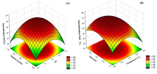 Response surface plot for the (A) enzymatic and (B) chemical demulsification of the AEP cream.