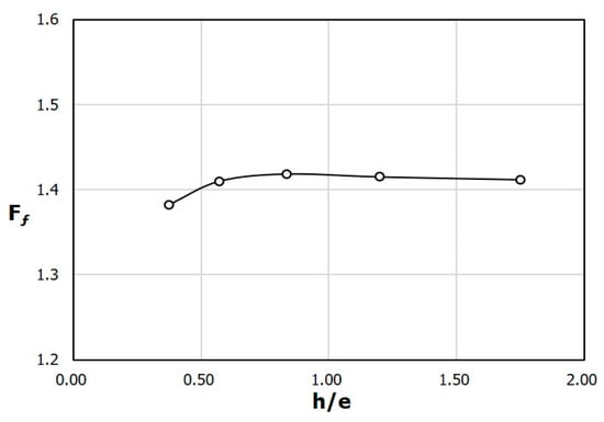Variation of Ff with h/e (rib area = 375 mm2).