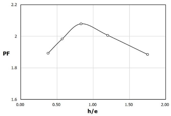 Variation of PF with h/e (rib area = 375 mm2).
