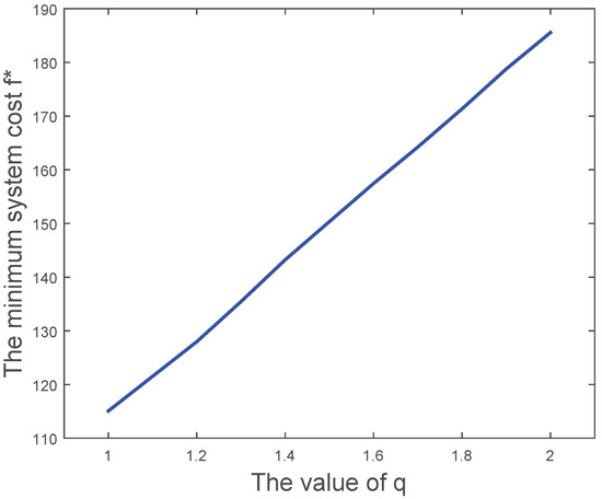 The trend of the system’s minimum cost while the value of q changes.