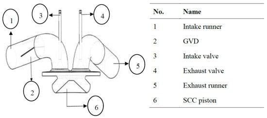 In this paper, the identified research gap has been considered by investigating the in-cylinder airflow characteristics using the combination of guide vane design (GVD) and piston bowl design of the shallow depth combustion chamber (SCC) type to enhance and regulate the in-cylinder airflow characteristics of CI engines. Concerning GVD, the four main parameters of the study are vane height, vane angle, vane number, and vane length. However, this research is limited to optimizing the length of the vane, while the other parameters were kept constant at fixed values based on the findings from previous studies [24,25,26]. As for the piston bowl design, the SCC type was selected since it is capable of generating uniform fluid flow throughout the piston-bowl design, as suggested by several researchers [27,28,29].