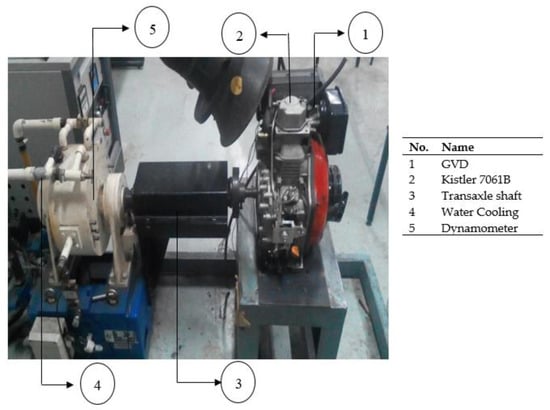This section discusses the experimental setup adopted in the study for validating the results of numerical simulation. The experiment was carried out in a test rig of the CI generator diesel engine YANMAR L70AE model, as shown in Figure 5. The existing data were used for numerical validation, considering some important technical aspects. During the experiment, all the engine boundary conditions were fixed, and a Kistler 7061B sensor with a highly sensitive water-cooled precision was screwed directly into the standard M14 hole. An optical sensor at the TDC position with a magnetic pickup shaft encoder was used to measure the in-cylinder pressure and record the data of crank angle positions. For better accuracy, the sensor was mounted near the valve. K-type thermocouples were installed at the intake and exhaust boundaries as close as possible to the cylinder head to measure the temperature. In this experiment, the SCC piston was fabricated and installed first-hand in the YANMAR L70AE CI generator diesel engine before running the engine test rig to collect experimental data.
