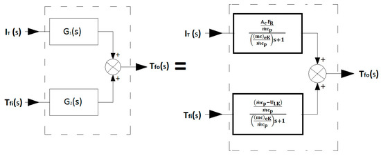 The solution of Equation (6) follows the solving system of linear equations, which takes on the matrix form of Equation (7), where the matrix c Equation (8) is a diagonal matrix of thermal capacities of particular components and the matrix Λ Equation (9) is a matrix of thermal conductivities of particular network nodes.