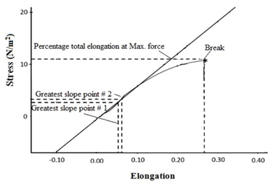 Tensile strength of a selected formulation was evaluated by using universal testing machine (UTM) to find out the force at a point where hydrogel breaks. Generally, it is proven from literature that hydrogel formulation, which contains high amount of monomer, would always display the highest amount of tensile strength. Formulation SN9 was selected for testing of tensile strength since it contains the highest amount of acrylic acid (19mL) as compared to other prepared formulations. It is found that this formulation displays 11.043 N/mm2 of tensile strength (Figure 10). Young’s modulus was 62.340 N/mm2 and percentage of total elongation was 26.464.