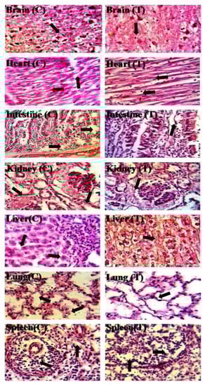 For histopathological assessment, histology slide of each vital organ was prepared, and their micrographs were recorded by single blind assessment method. No change was found in the tested group as compared to the control group (Figure 12). Thus, HPMC-pectin-co-acrylic acid hydrogel was found to be nontoxic and safe to living tissues. Cardiac tissues (control and tested) had normal cardiomyocytes without any hypertrophy and inflammation. Liver section of both control and tested groups showed no sign of inflammation and degradation in hepatic cells. Lung section and alveoli were clear without any sign of inflammation and cellular damage. No accumulation of macrophages and other defender cells was found. Spleen section was normal, and their normal shape was retained in both groups of rabbits. In brain section, cells were observed to be normal and neurons were visible with smooth myelin sheath around them. Kidney section revealed that kidneys were normal in both groups. There was no accumulation of inflammatory cells with absence of cellular damage. Lastly, histomicrographs of small intestinal section also displayed normal results in both control and tested group.
