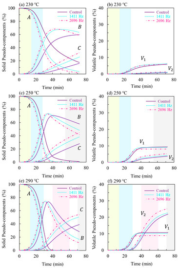 - Silveira, E.A.; Lin, B.J.; Colin, B.; Chaouch, M.; Pétrissans, A.; Rousset, P.; Chen, W.H.; Pétrissans, M. Heat treatment kinetics using three-stage approach for sustainable wood material production. Ind. Crops Prod. 2018, 124, 563–571. [Google Scholar] [CrossRef]