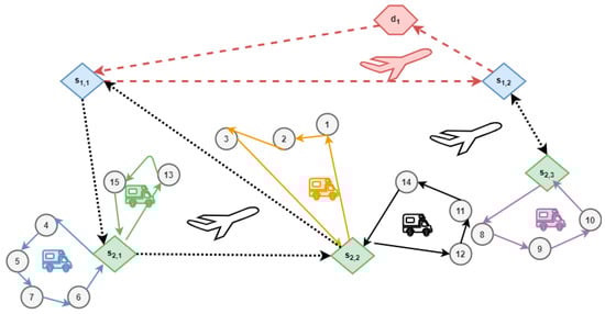 - Drexl, M. Applications of the vehicle routing problem with trailers and transshipments. Eur. J. Oper. Res. 2013, 227, 275–283. [Google Scholar] [CrossRef]